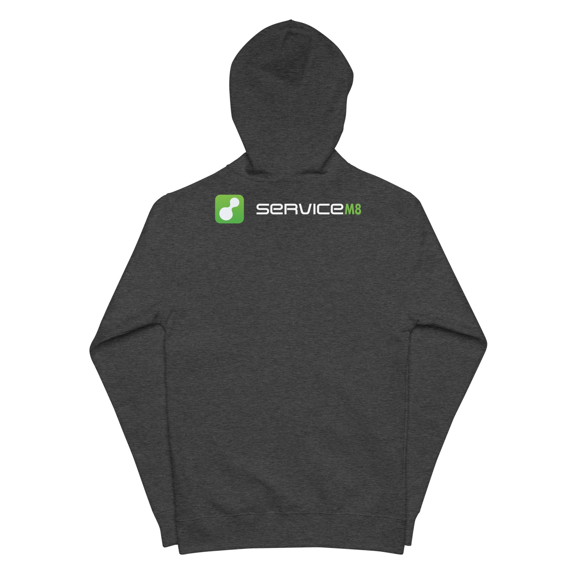 Cold mornings, warm moves. This zip-up throws on fast, keeps the chill out, and reps ServiceM8 with a clean chest icon up front and a bold wordmark across the back.